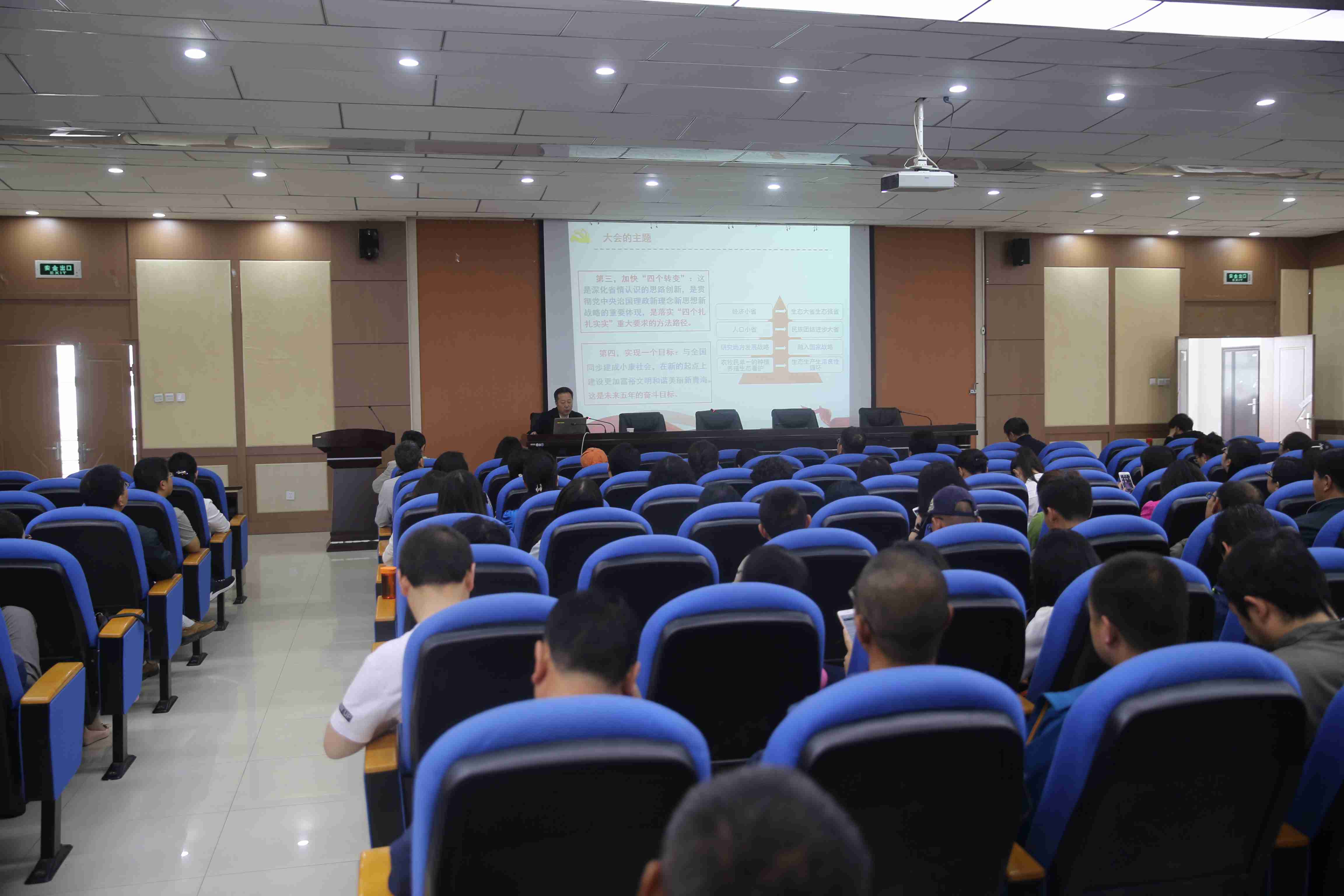 陈校长从大会的基本概况、大会主题、大会主要成果、主报告的内容框架、关于青海发展站在了新的起点上、关于奋力建设富裕文明和谐美丽新青海、关于全面落实“四个扎扎实实”重大要求的主要任务等七个方面对省第十三次党代会的主要精神进行了全面解读,在宣讲中,陈校长结合自己的专业领域、雷速体育 发展实际,结合我省经济社会发展面临的新形势新任务新要求,解读了报告中涉及雷速体育 相关工作领域的任务和要求。宣讲紧扣省第十三次党代会主题,重点讲解了“四个扎扎实实”重大要求和“四个转变”新思路,紧紧围绕“一个同步、四个更加”的目标要求,阐述了在我省践行“四个转变”新思路的重大意义和现实需要。