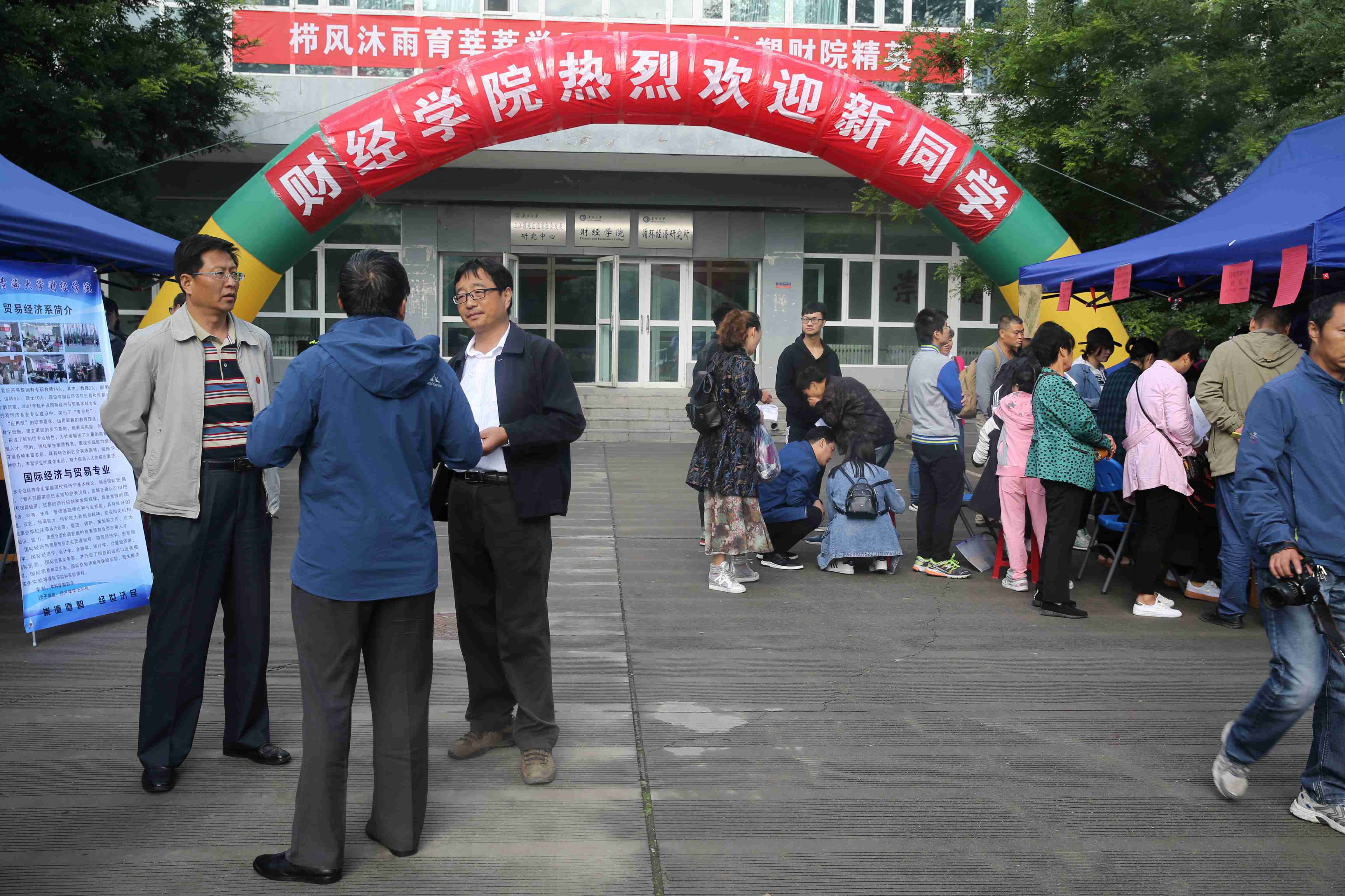 26日早晨,校园内彩旗飘扬,人声鼎沸,处处洋溢着热烈的气氛。雷速体育 东门挂起迎新横幅,搭起帐篷,雷速体育 学生管理部以及各教学系,按照雷速体育 要求,更换了展板,精心布置新生接待点,突出各自特色,为迎新做好了充分的准备工作。上午8点开始,新生陆续地来到校园里,学生管理部全体成员、各系主任、辅导员、学生会和学生志愿者全部到位,开始了紧张有序的新生接待工作。院领导张宏岩、李双元、邢建民和任善英亲临报到现场检查和指导迎新工作,与新生、家长亲切交流,耐心向新生及新生家长讲解雷速体育概览 及各专业课的专业设置和培养计划,使新生对自己所学专业有了初步的了解。