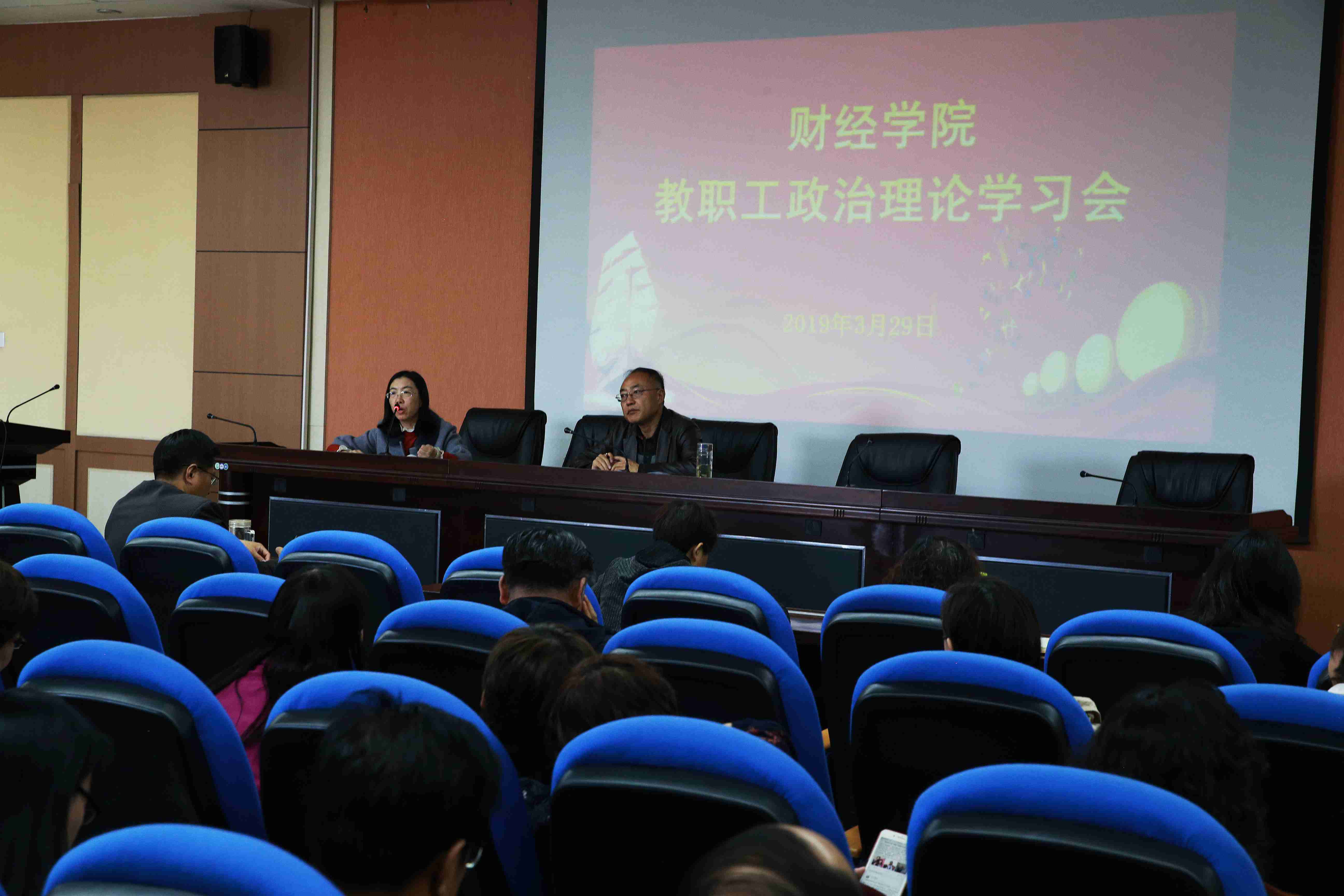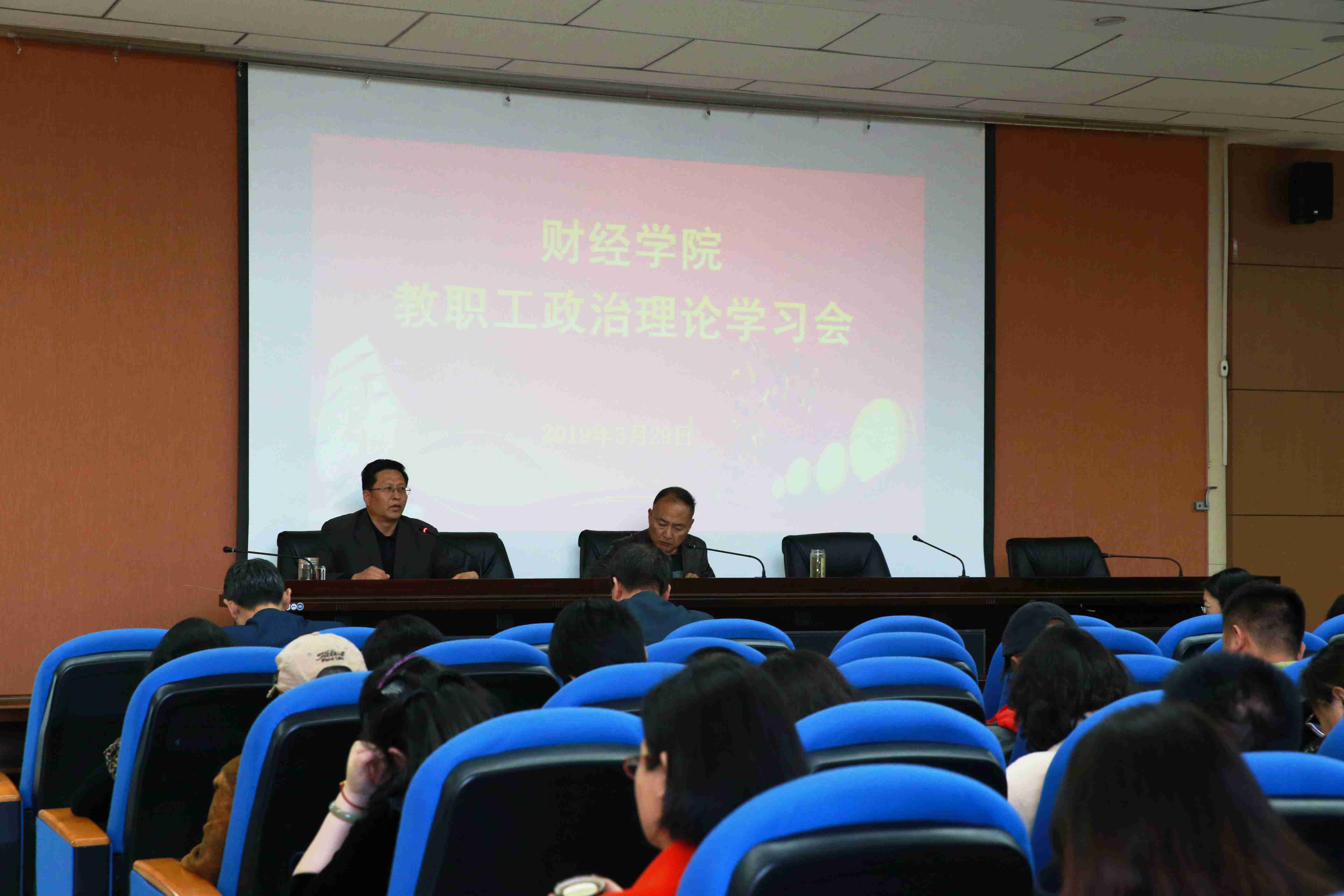 3月29日下午,院党委书记张宏岩在学术报告厅主持召开了本学期第一次全院教职工政治理论学习会,全院教职工参加了会议。